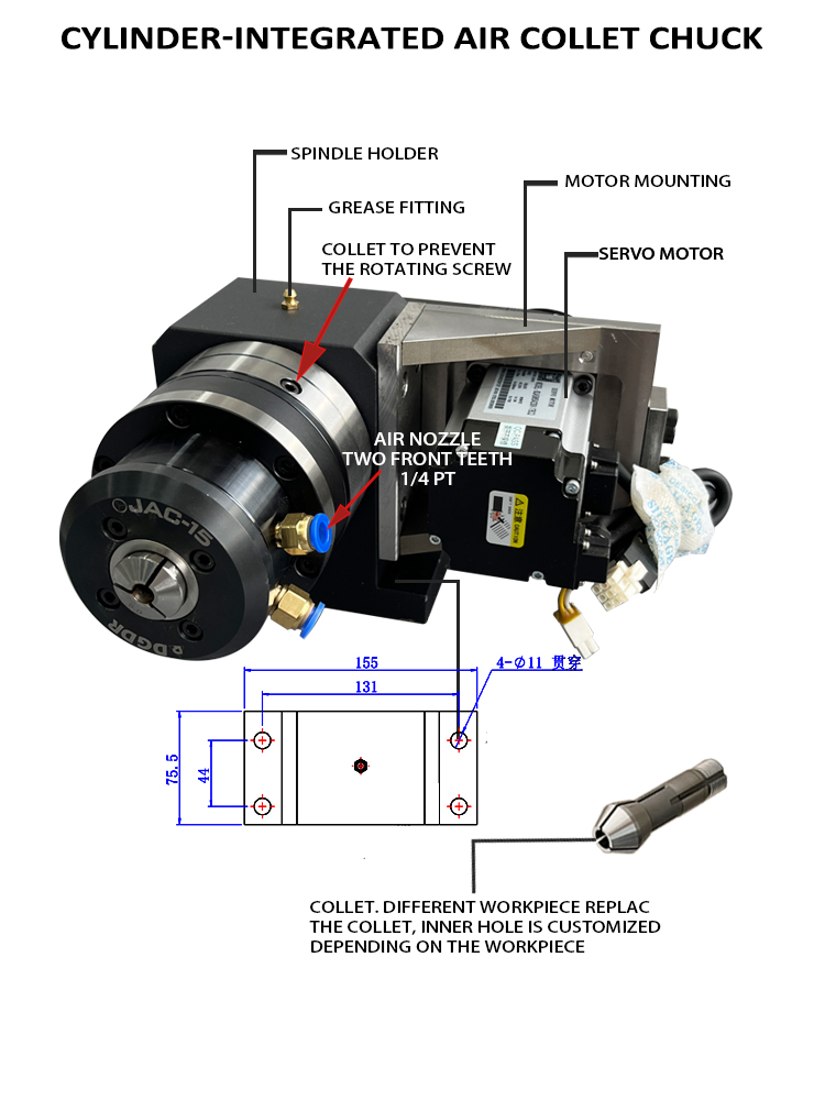 automatic equipment air collet chuck spindle holder through hole pneumatic chuck for high precision machine Flower stripper machine chuck
