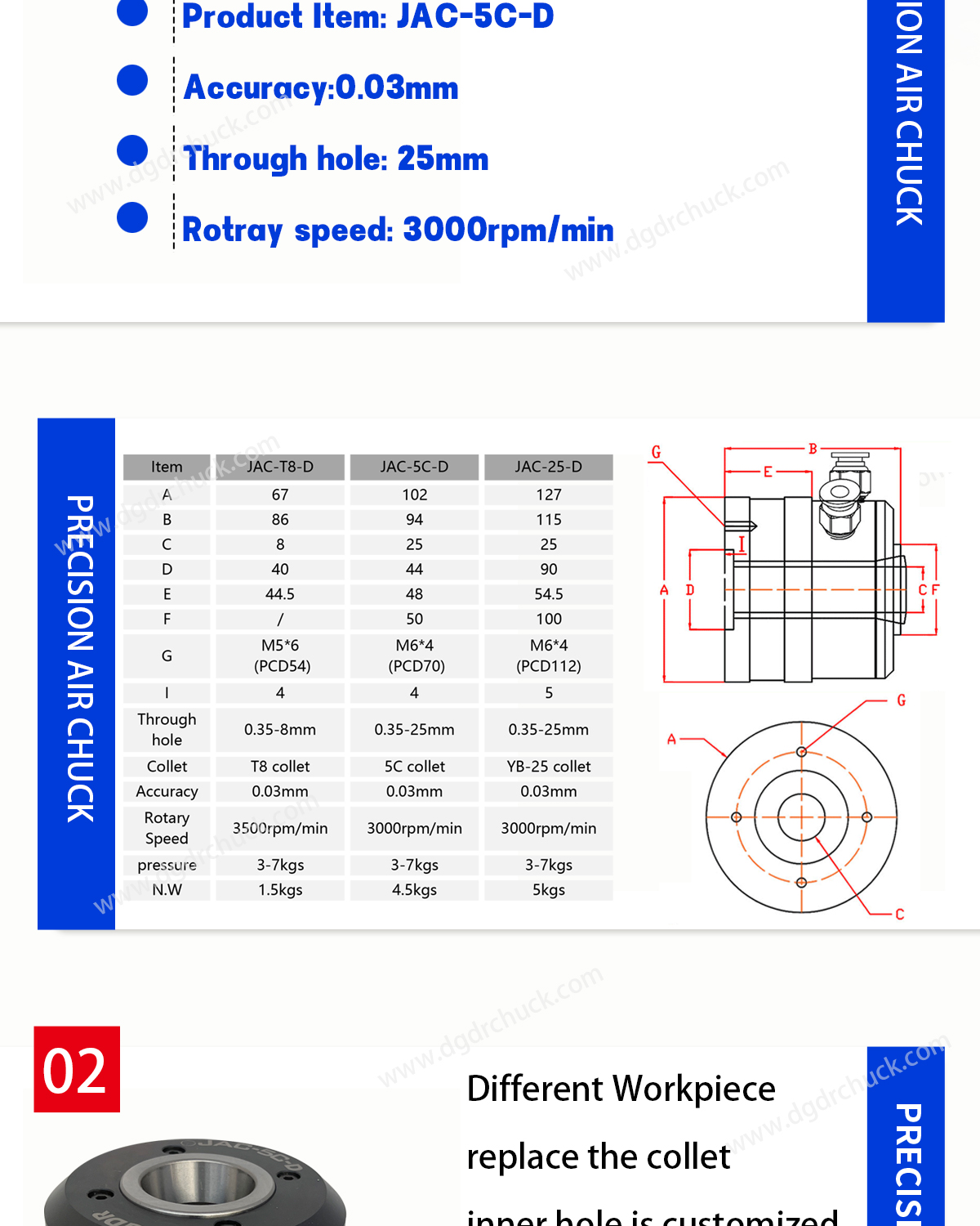 automatic equipment air collet chuck with 5C collet 25MM through hole pneumatic chuck for small lathe high precision clamping tools rotary power chuck