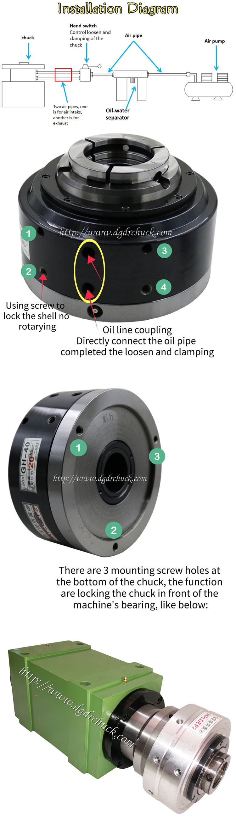 GH-40 Vertical fixing standard through-hole pneumatic cnc lathe Rotary power chuck for capper machine tapping machine drilling machine oil chuck