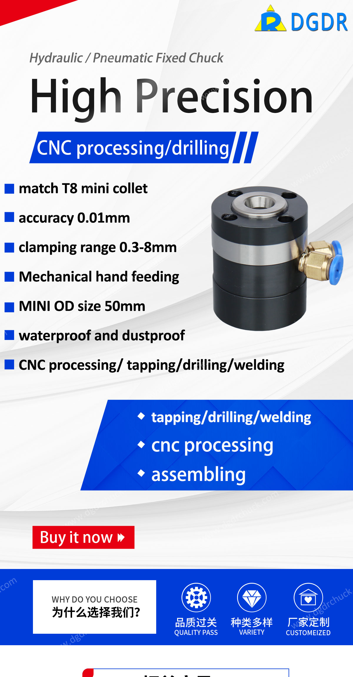 mini stationary air collet chuck DAS-MT8 through hole 8mm small pneumatic chuck for tapping and drilling machine laser welding