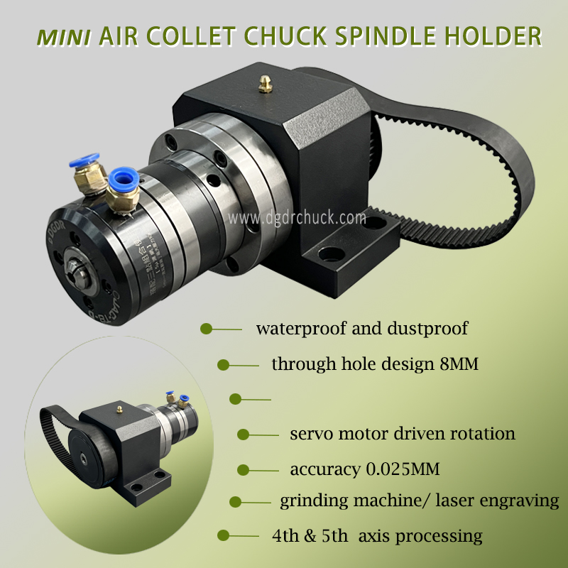 small air collet chuck spindle holder 8MM through hole grinding machine pneumatic chuck for small cnc lathe turning and cutting machine chuck